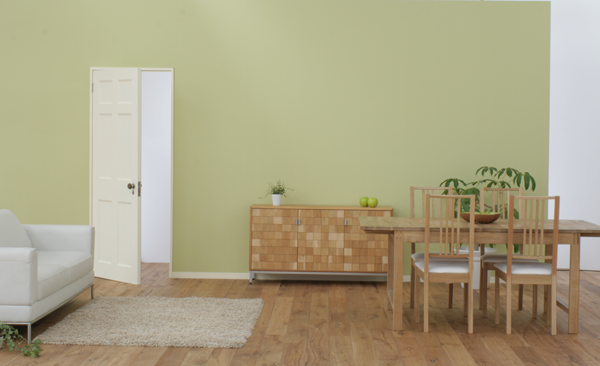 スタジオに常設のニュアンス壁を塗り替えて使用。 |